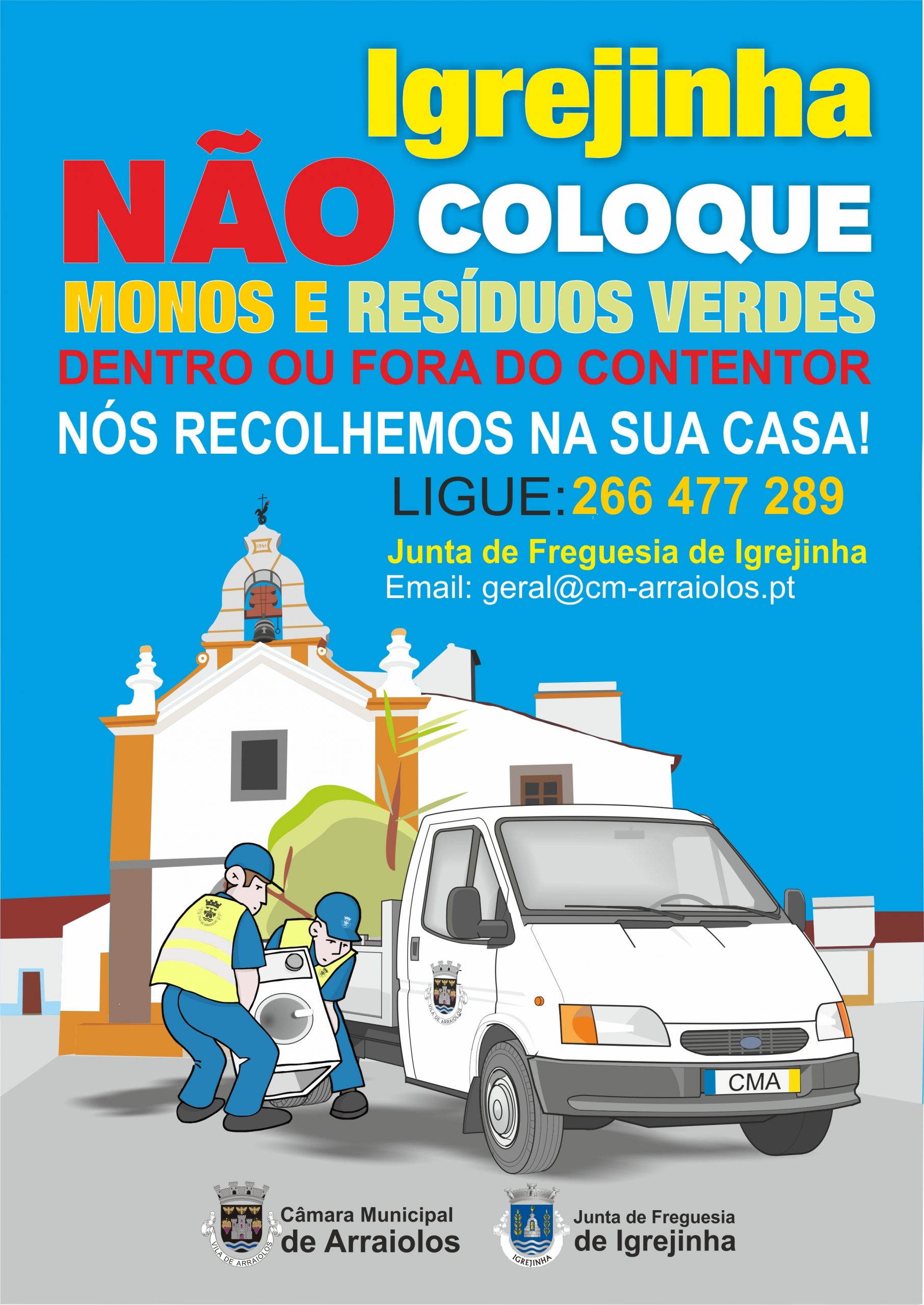 A Câmara Municipal de Arraiolos disponibiliza gratuitamente um serviço de recolha de monos, nomeadamente, colchões, móveis antigos, eletrodomésticos, resíduos verdes, madeiras, etc.